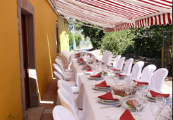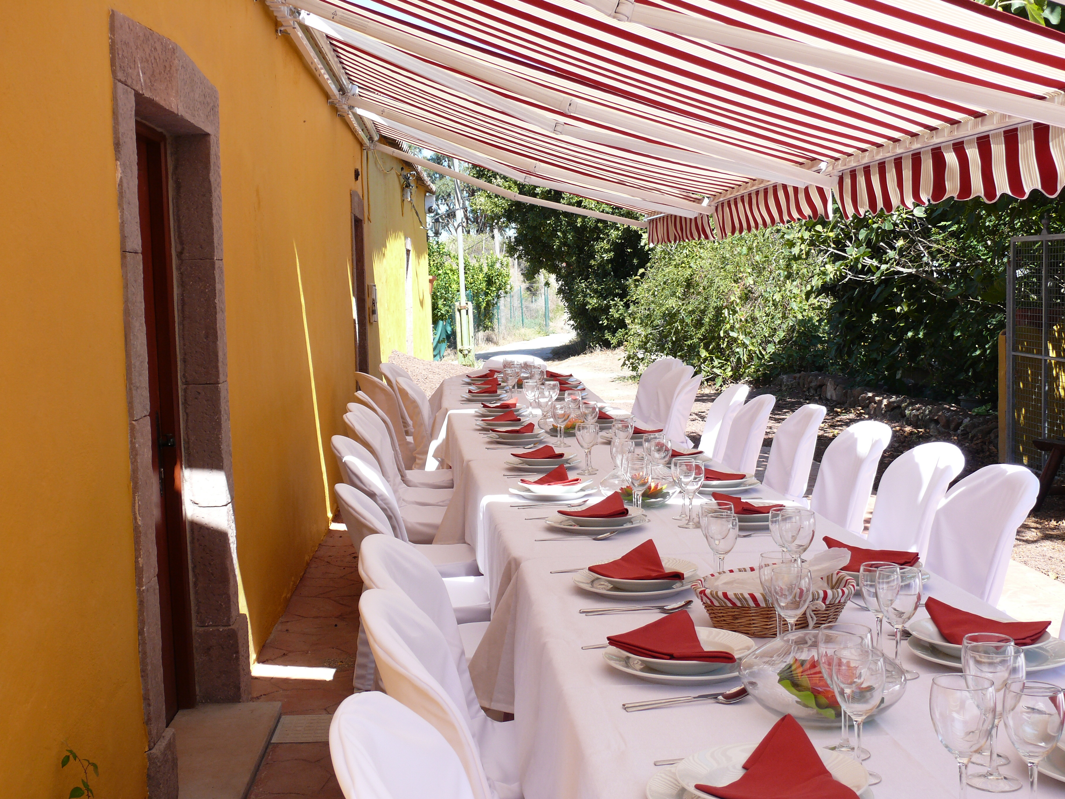 La finca dispone de dos salones interiores para 40 + 35 personas y dos terrazas exteriores amplias para unas 75 personas aproximadamente. Esta terrazas, de unos 60m², se encuentra cubierta con toldos y sombrillas al aire libre. La finca, que cuenta con unos 40.000m² incluyendo zonas de cultivos de arboles frutales, ofrece unas preciosas vistas hacia un bosque de castaño y hacia el norte de la isla.